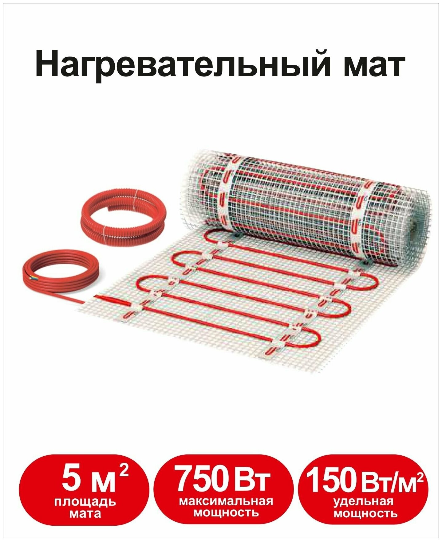 Нагревательный мат СТН "Квадрат Тепла" КМ-750-5,0, мощность 750Вт, красный