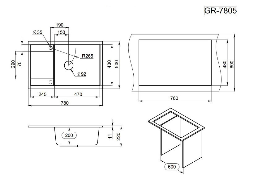 Мойка из композитного материала Granula GR-7805 черный 11 700 ₽