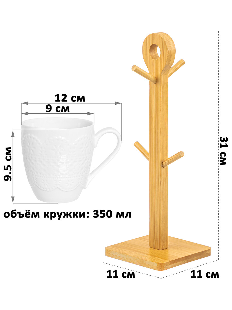 10 цен на Набор 4 кружек 350 мл 20*20*31 см "Кружево" на дерев. подставке с ручкой