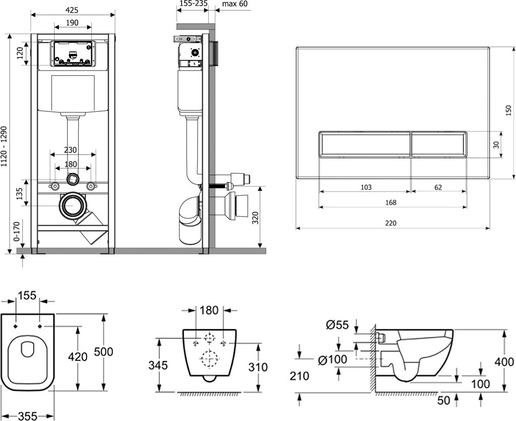 Комплект IDDIS Basic BASBQ02i73: подвесной унитаз, инсталляция и черная клавиша смыва
