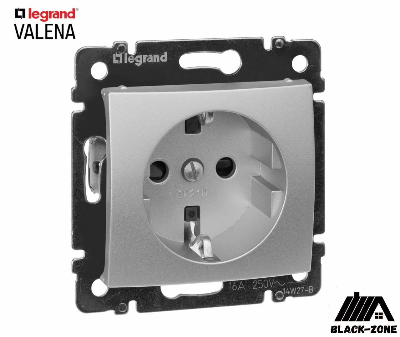 Legrand (Легранд) Розетка с защитными шторками цвета алюминий, Valena 770121 681 ₽
