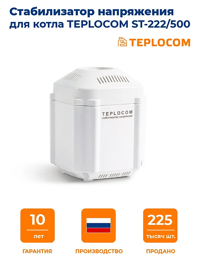 Стабилизатор напряжения TEPLOCOM ST-222/500ВА для настенных котлов информация: