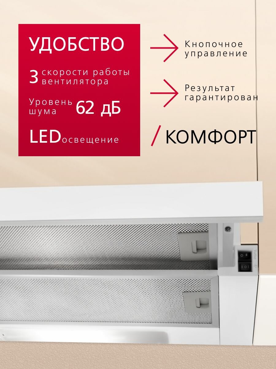10 цен на Телескопическая вытяжка Hansa OTP6233WH, 60 см, механическое управление, 3 скорости, режимы отвода и рециркуляции, светодиодная подсветка, белая