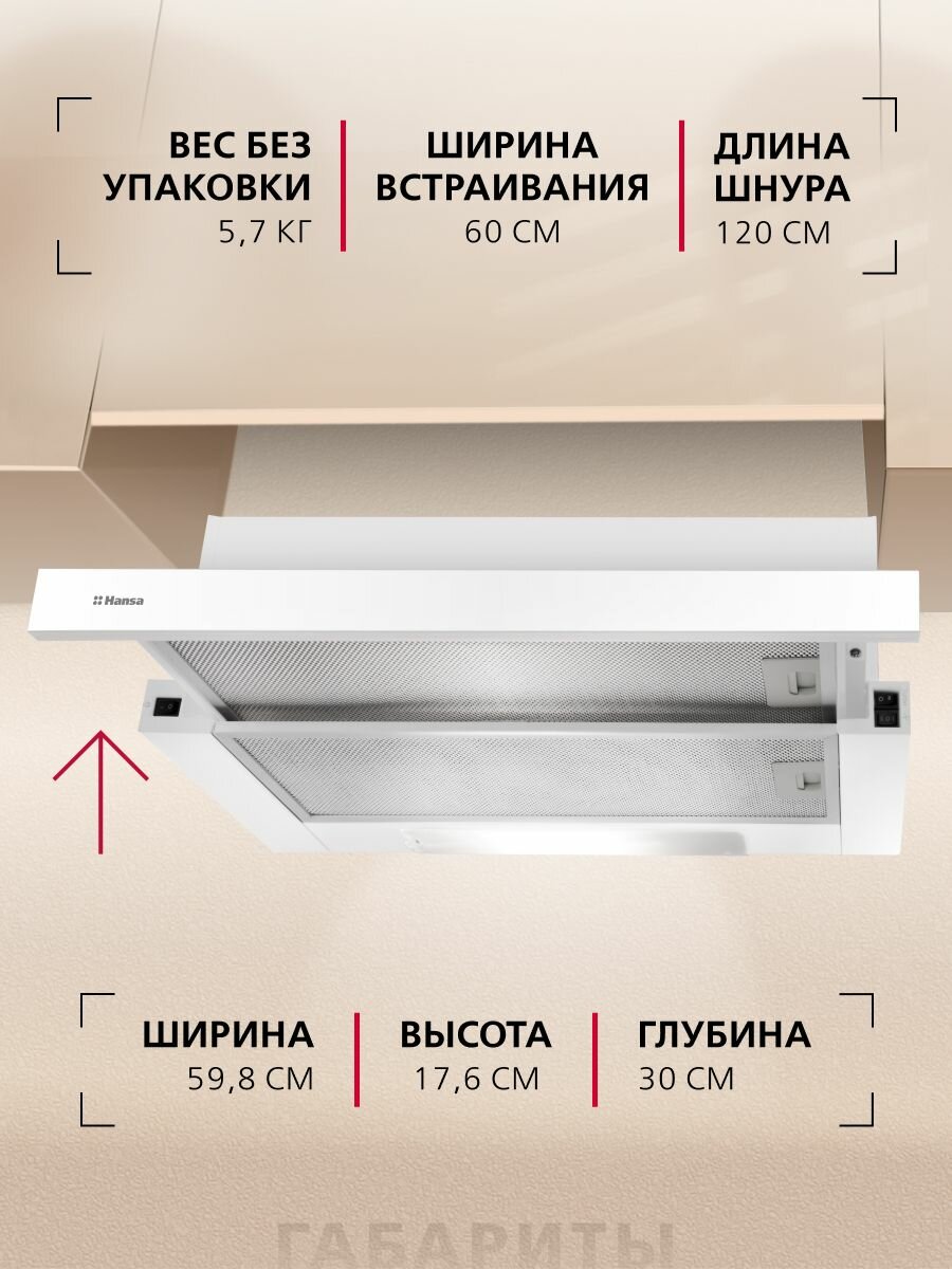 Отзывы на Телескопическая вытяжка Hansa OTP6233WH, 60 см, механическое управление, 3 скорости, режимы отвода и рециркуляции, светодиодная подсветка, белая