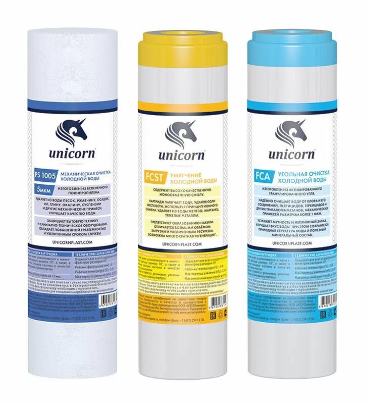 Unicorn Комплект картриджей для питьевых систем PS-10, FCB-10, FCBL-10 UNICORN (K-CB), 1 уп, 3 шт.