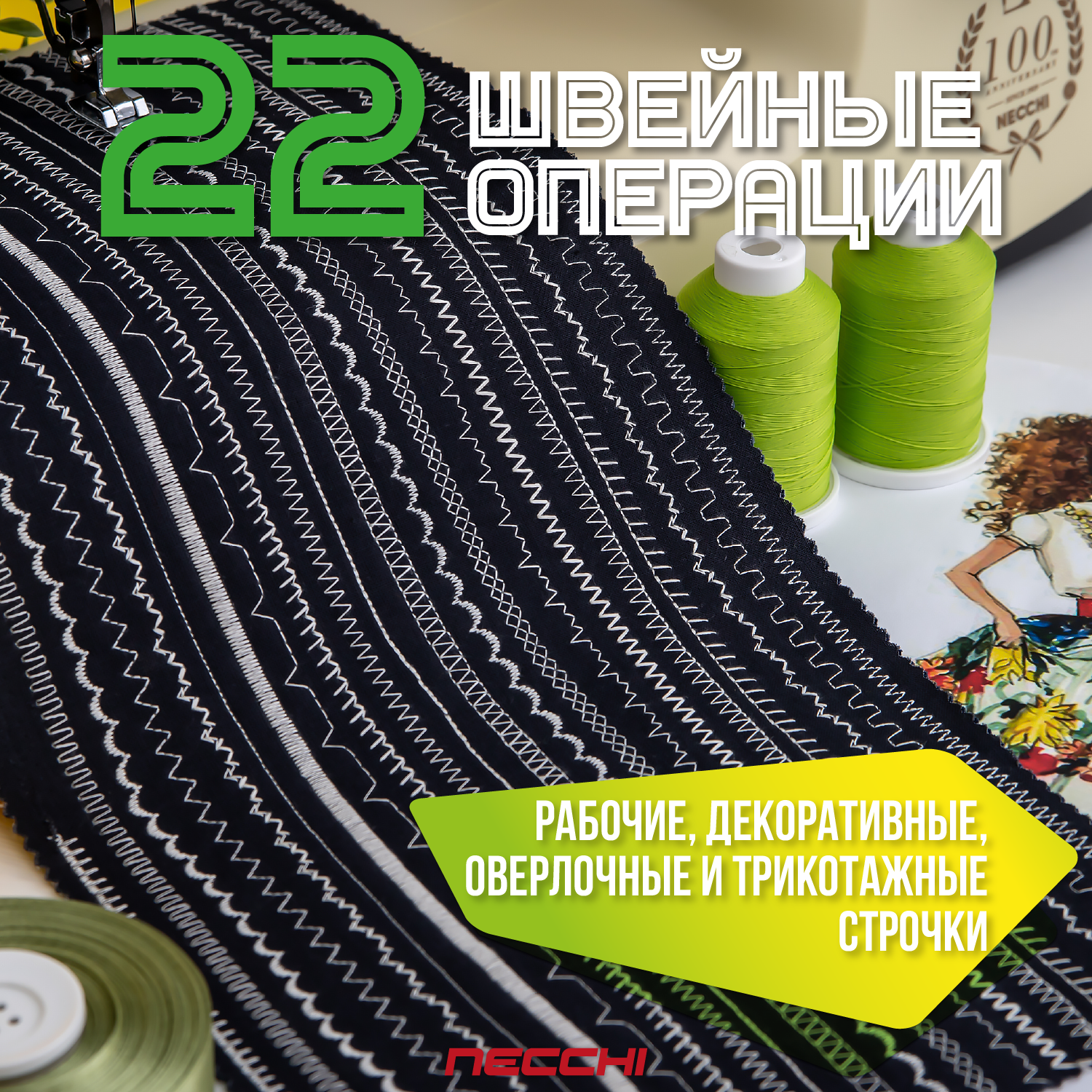 10 цен на Швейная машина Necchi 100, 22 операции, нитевдеватель, петля полуавтомат, ретро дизайн
