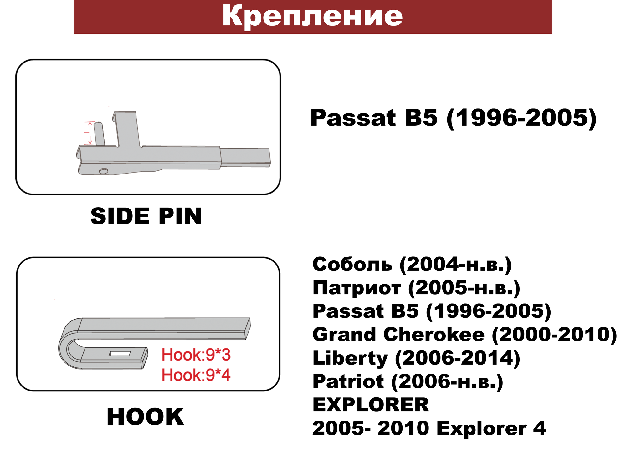 | Тип крепления | боковой штырь (side pin) / крючок (hook) |