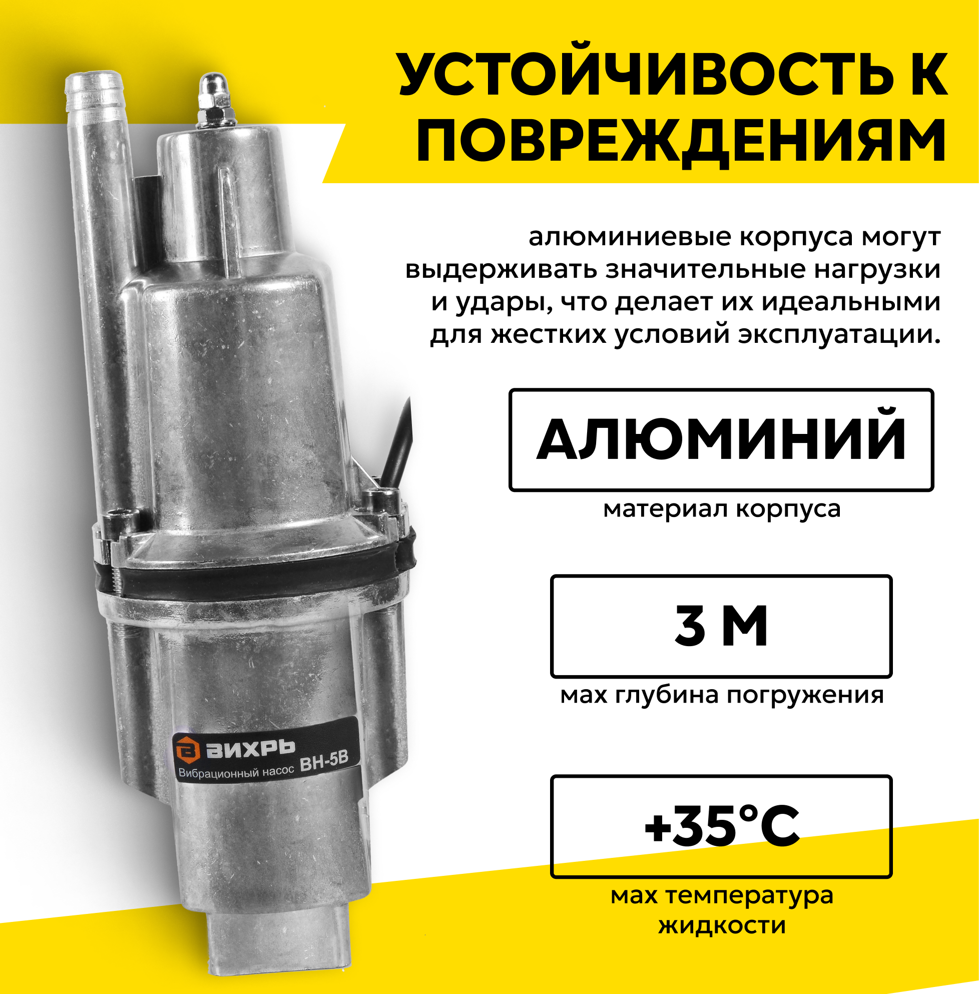 Вибрационный насос ВН-5В Вихрь, высота подъема 72м, верхний забор воды, кабель 5м информация: