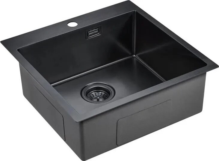 Кухонная мойка из нержавеющей стали AISI 304 Paulmark VELTEN, 510х510 мм, PVD и шумопоглащающее покрытие, врезная, подстольная и вровень со столешницей, цвет вороненая сталь, PM905151-GM