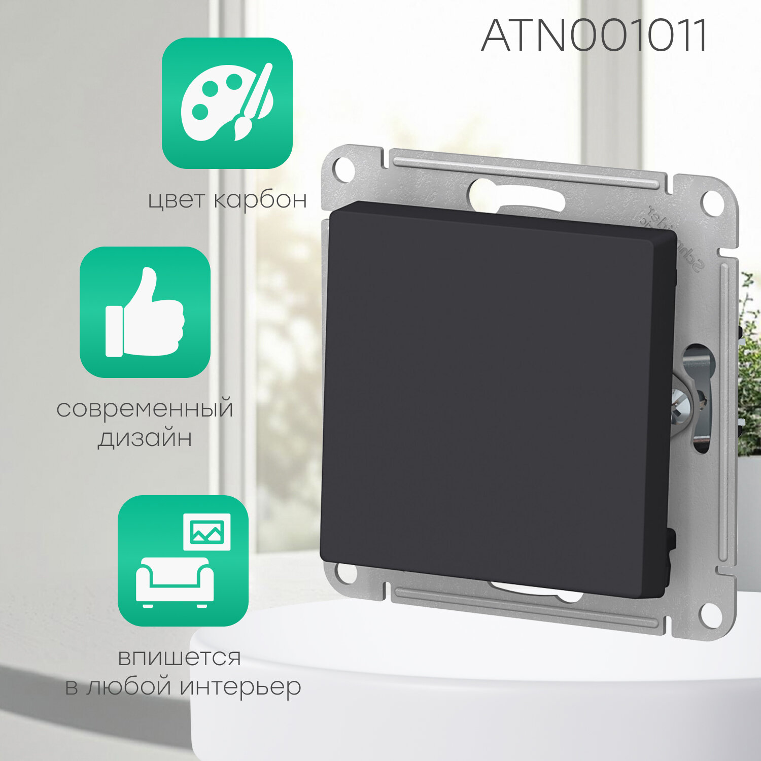 Systeme Electric ATLASDESIGN 1-клавишный выключатель, сх.1, 10АХ, механизм, карбон ATN001011 комплект 3 шт. информация: