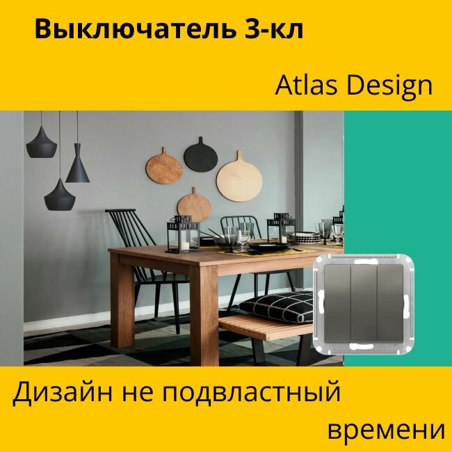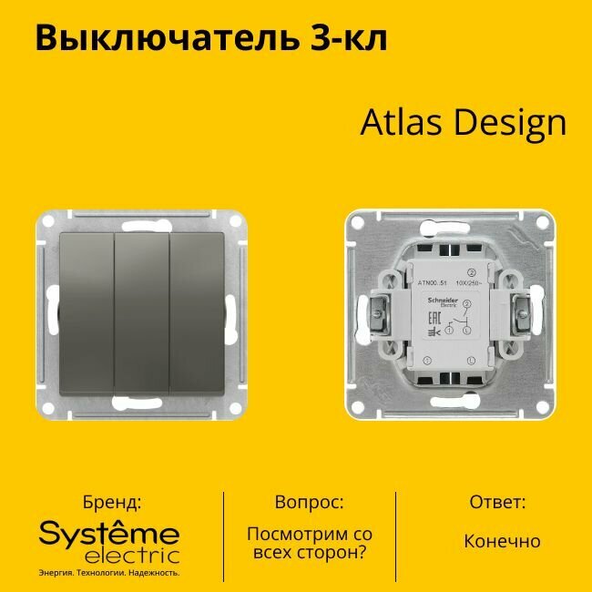 Отзывы на Выключатель электрический Systeme Electric Atlas Design 3-клавишный, 10А, 10 AX, Сталь ATN000931 - 10 шт.