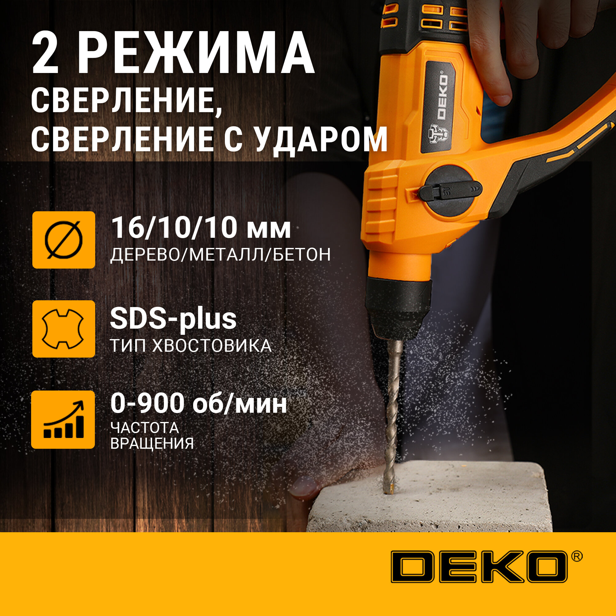 Отзывы на Перфоратор DEKO DKCH20, аккумуляторный, 2 режима, 1 аккумулятор, 2Ач