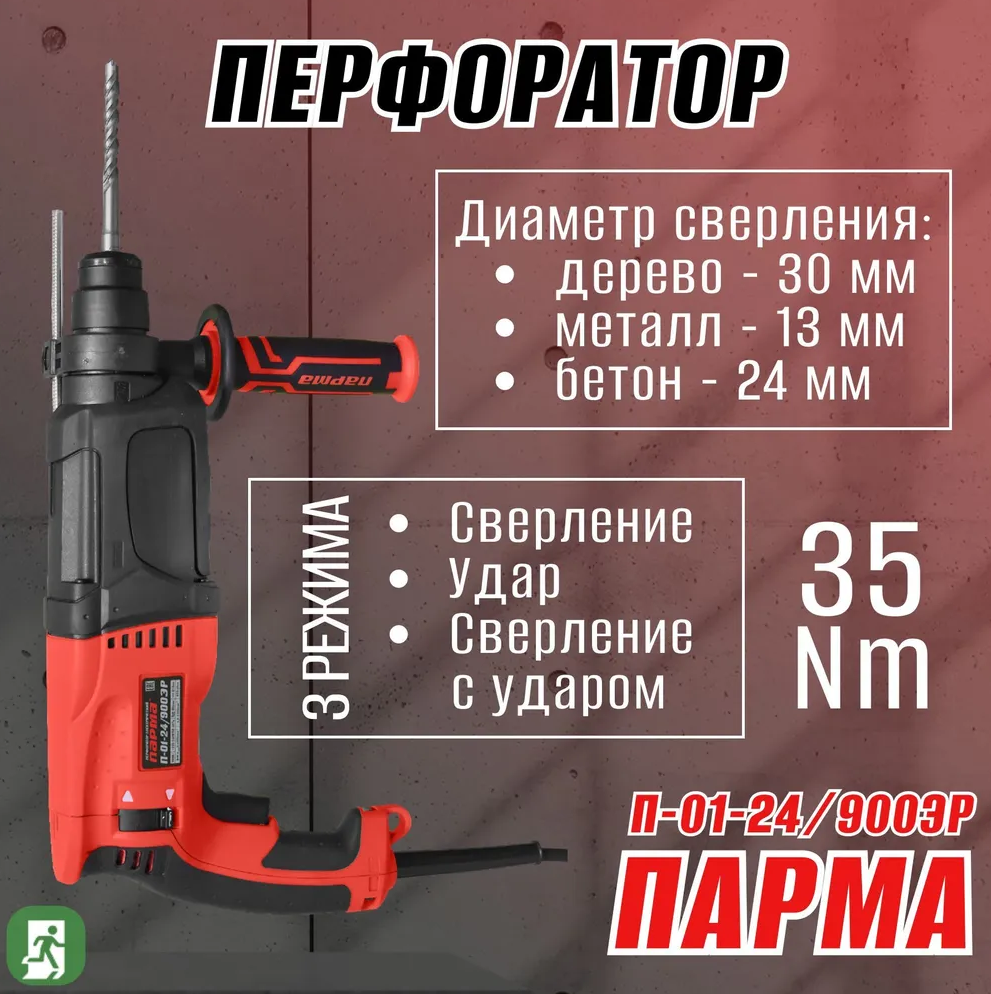 Перфоратор Парма П-01-24/900ЭР, без аккумулятора, 900 Вт информация: