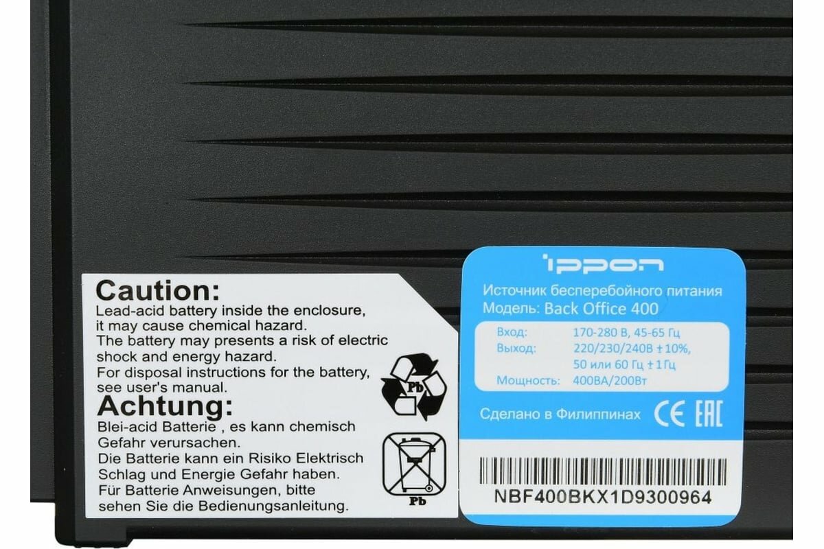 Источник бесперебойного питания IPPON Back Office 1000 600Вт 1000ВА черный 582021 информация: