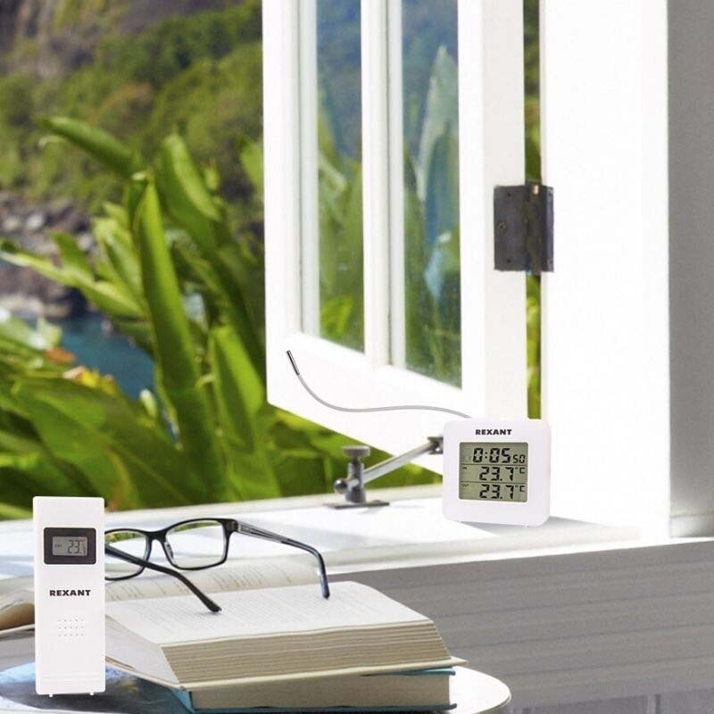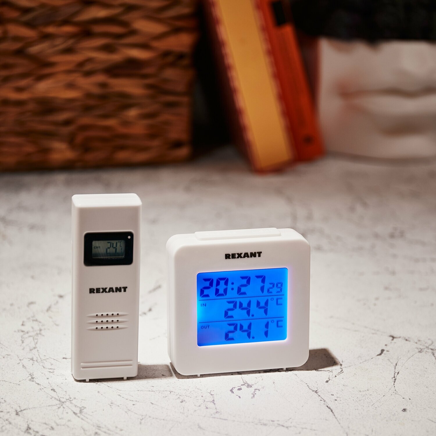 Термометр электронный Rexant с часами и беспроводным выносным датчиком(70-0592)