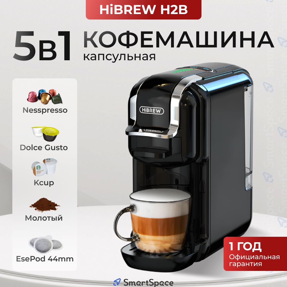 Кофемашина капсульная Hibrew автоматическая универсальная 5 в 1 Dolce Gusto, черный информация:
