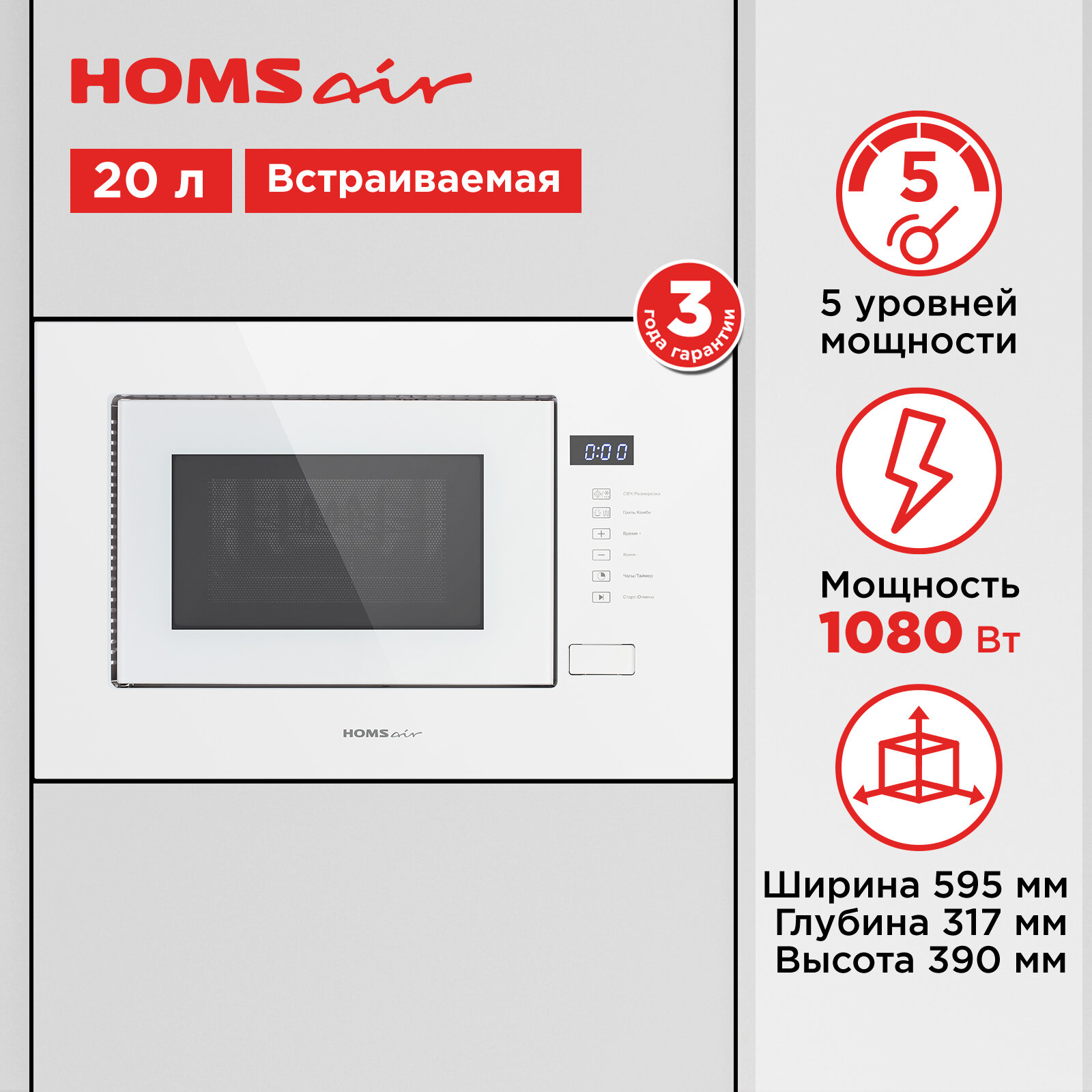Микроволновая печь HOMSAIR MOB205WH, встраиваемая, 20л, 1080Вт, белый