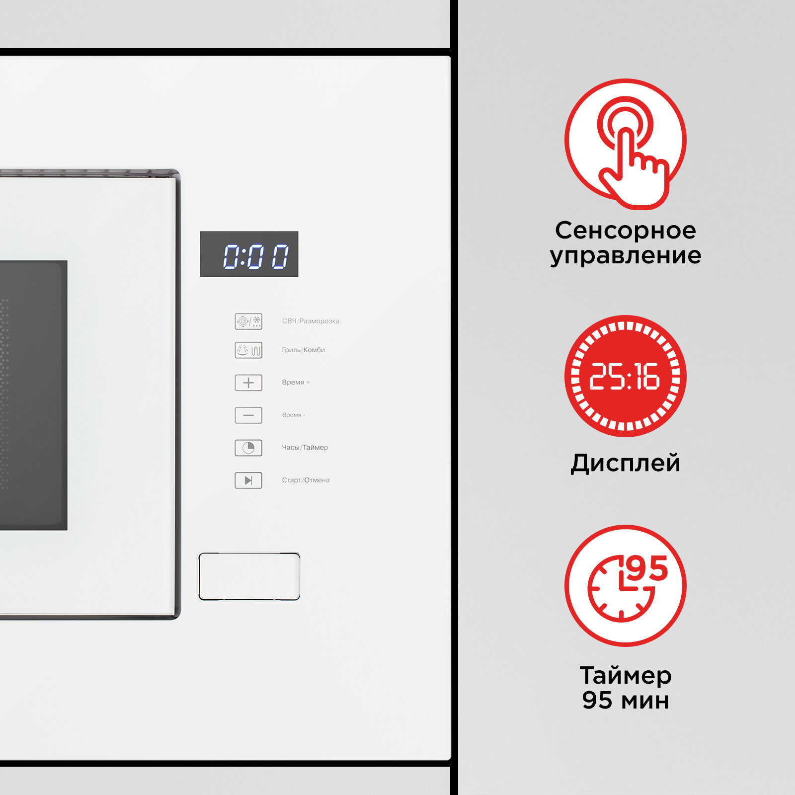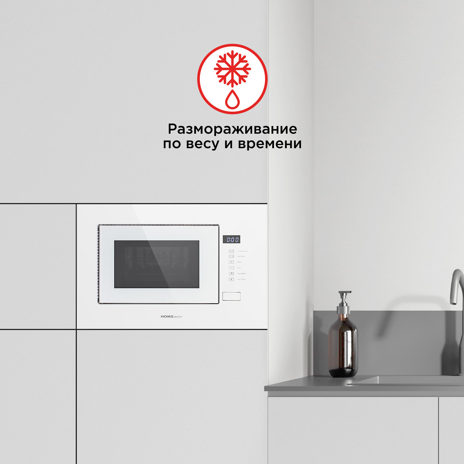 Микроволновая печь встраиваемая HOMSair MOB205WH белый модерн, 20 л, 1080 Вт, 8 режимов информация: