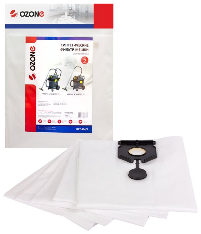 10 цен на Фильтр-мешки для пылесоса KARCHER NT 40/1, NT 50/1, 5 шт, синтетика, не боятся мокрой пыли, MXT-364/5, тип оригинального мешка: 2.889-155.0