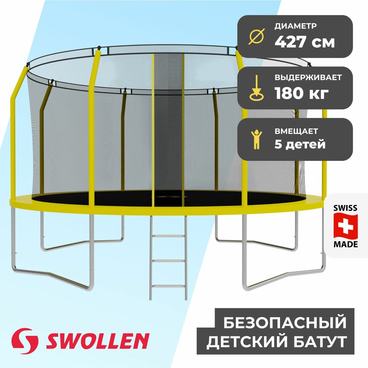 Батут с защитной сеткой SWOLLEN Comfort Overlap 14 FT (427 см) (Yellow) детский, для детей, уличный, для улицы, для дачи информация: