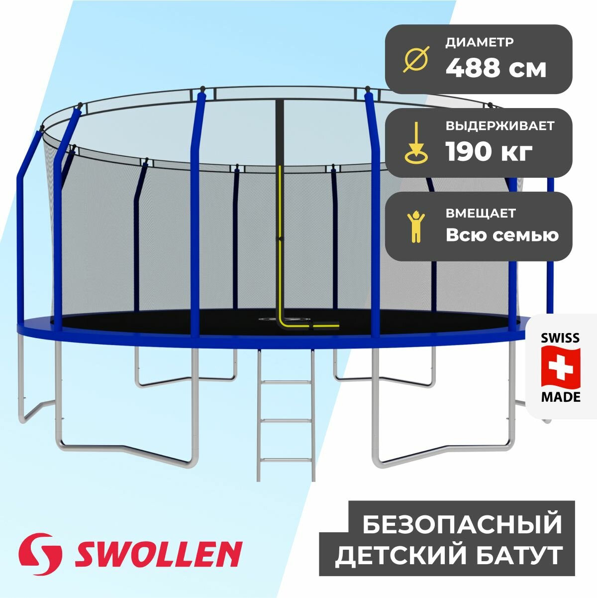 Батут с защитной сеткой SWOLLEN Comfort ZIP 16 FT (488 см) (Blue) детский, для детей, уличный, для улицы, для дачи информация: