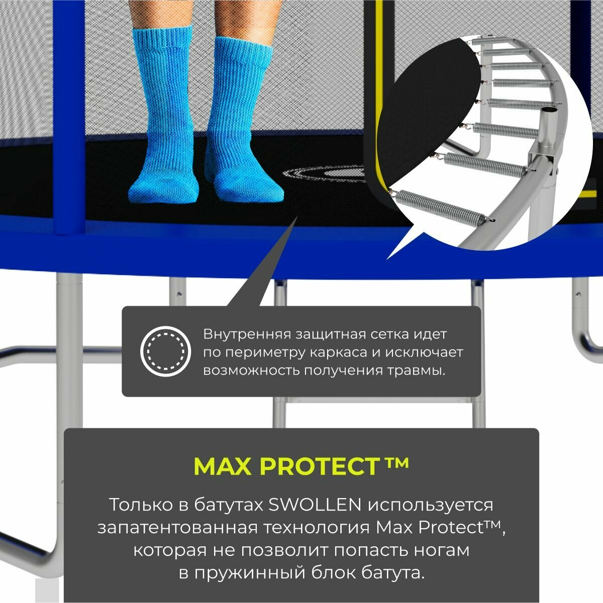 Отзывы на Батут с защитной сеткой SWOLLEN Comfort ZIP 14 FT (427 см) (Blue) детский, для детей, уличный, для улицы, для дачи