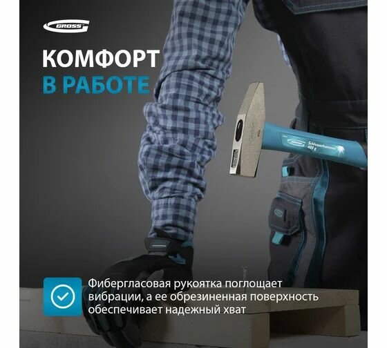 GROSS Молоток слесарный, 300 г, квадратный боек, фибергласовая обрезиненная рукоятка Gross, ( 10273 ) 1 034 ₽