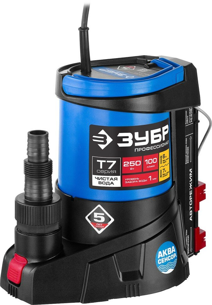 Отзывы на ЗУБР Насос Т7 АкваСенсор погружной, ЗУБР Профессионал НПЧ-Т7-250, дренажный для чистой воды, 250 Вт, мин. уровень 1 мм, 100 л/мин, напор 6 м, провод 10 м, ( НПЧ-Т7-250 )
