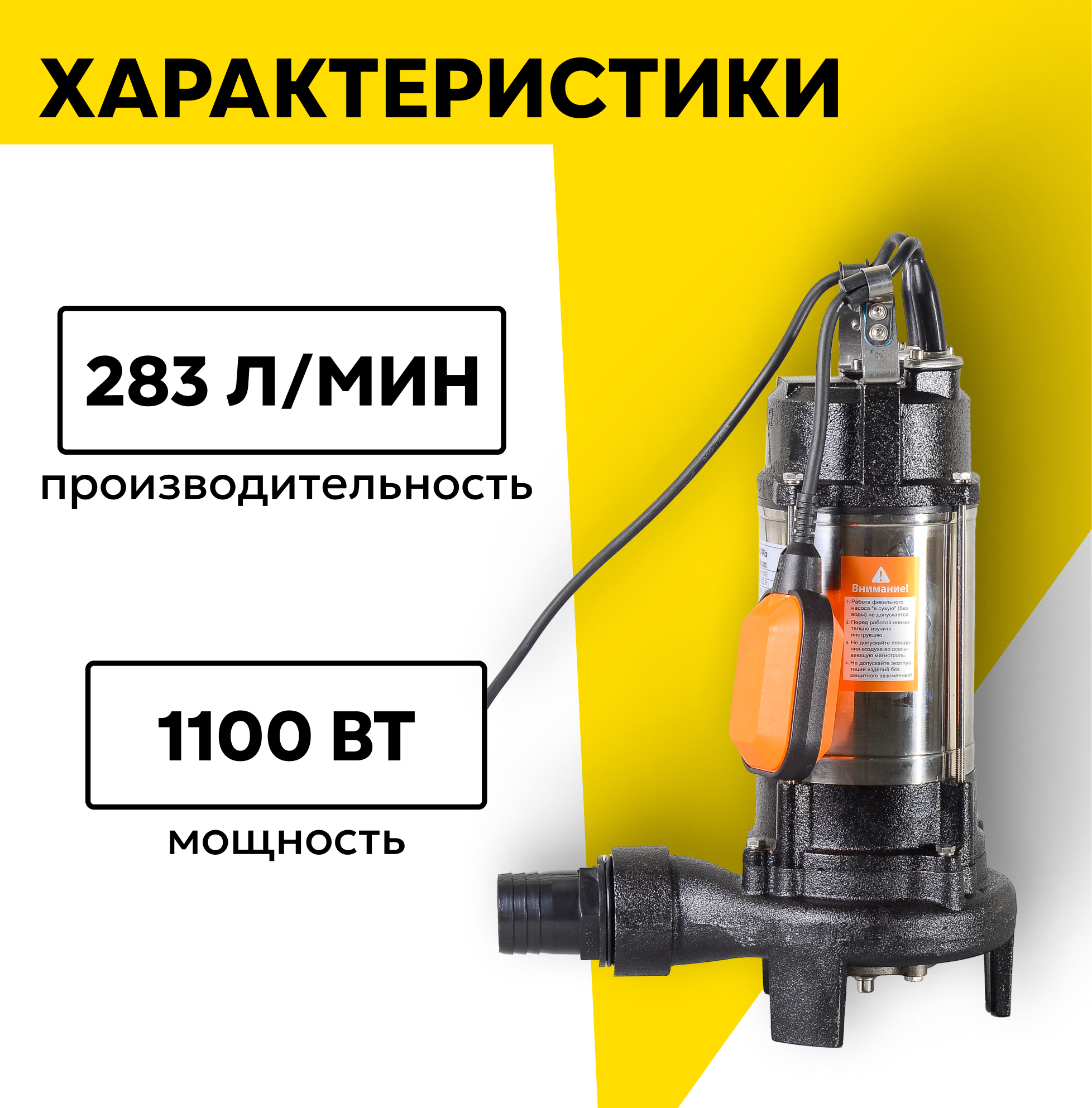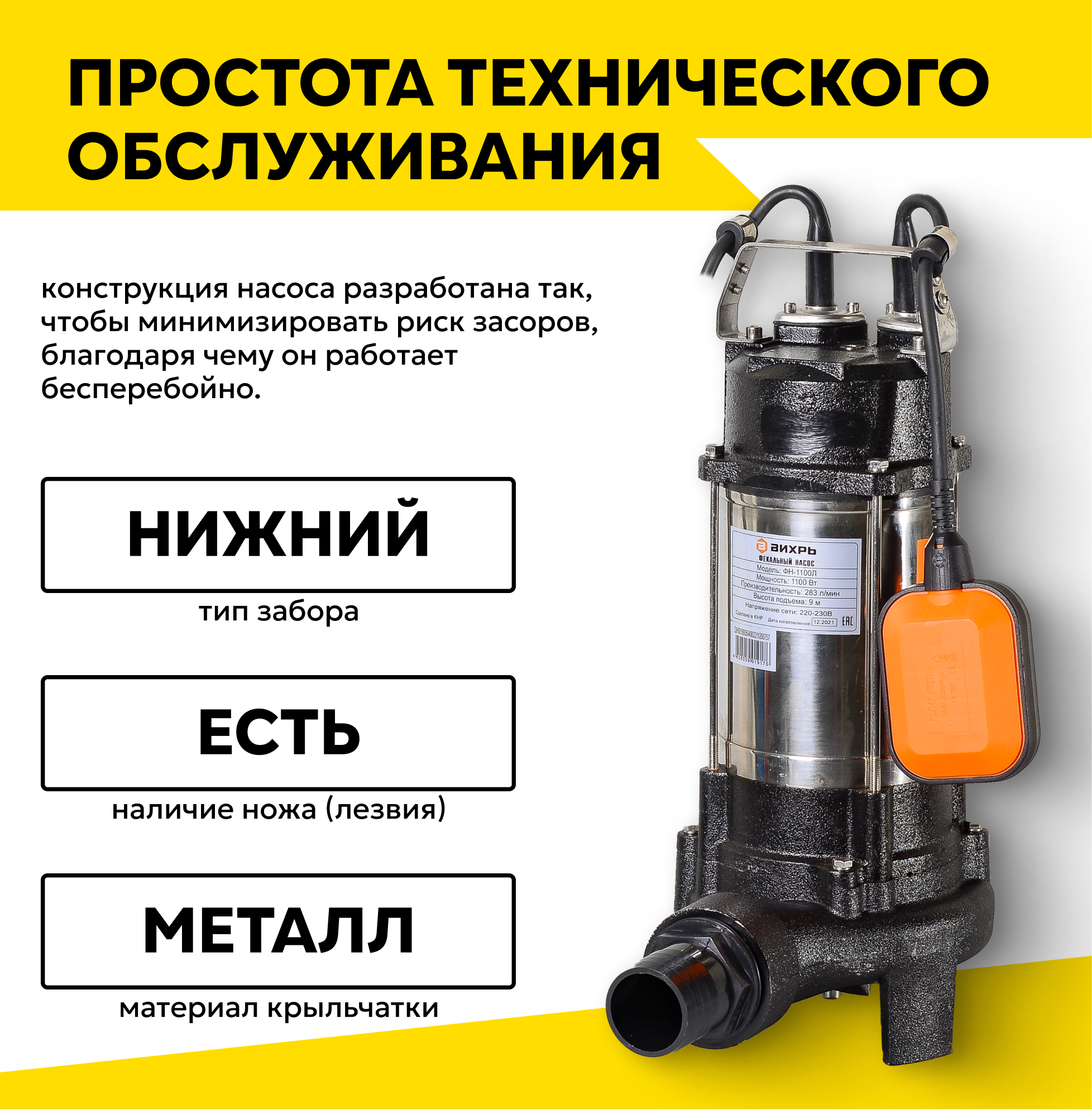 10 цен на Фекальный насос вихрь ФН-1100Л, 1100 Вт, высота подъема – 9 м, 17 м³/ч, 2”