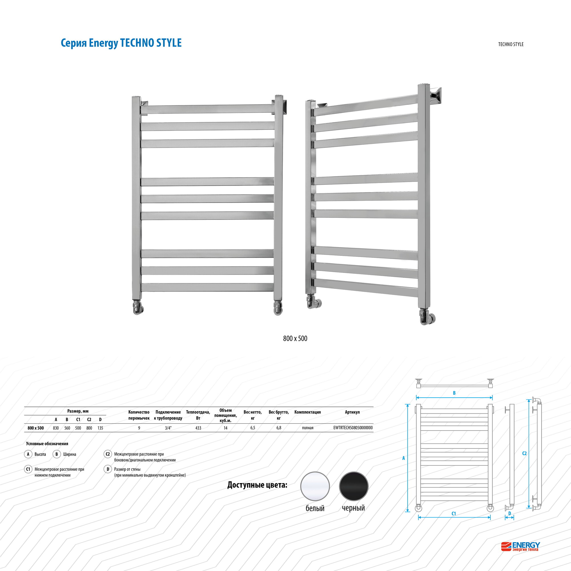 Водяной полотенцесушитель Energy Techno 800x500