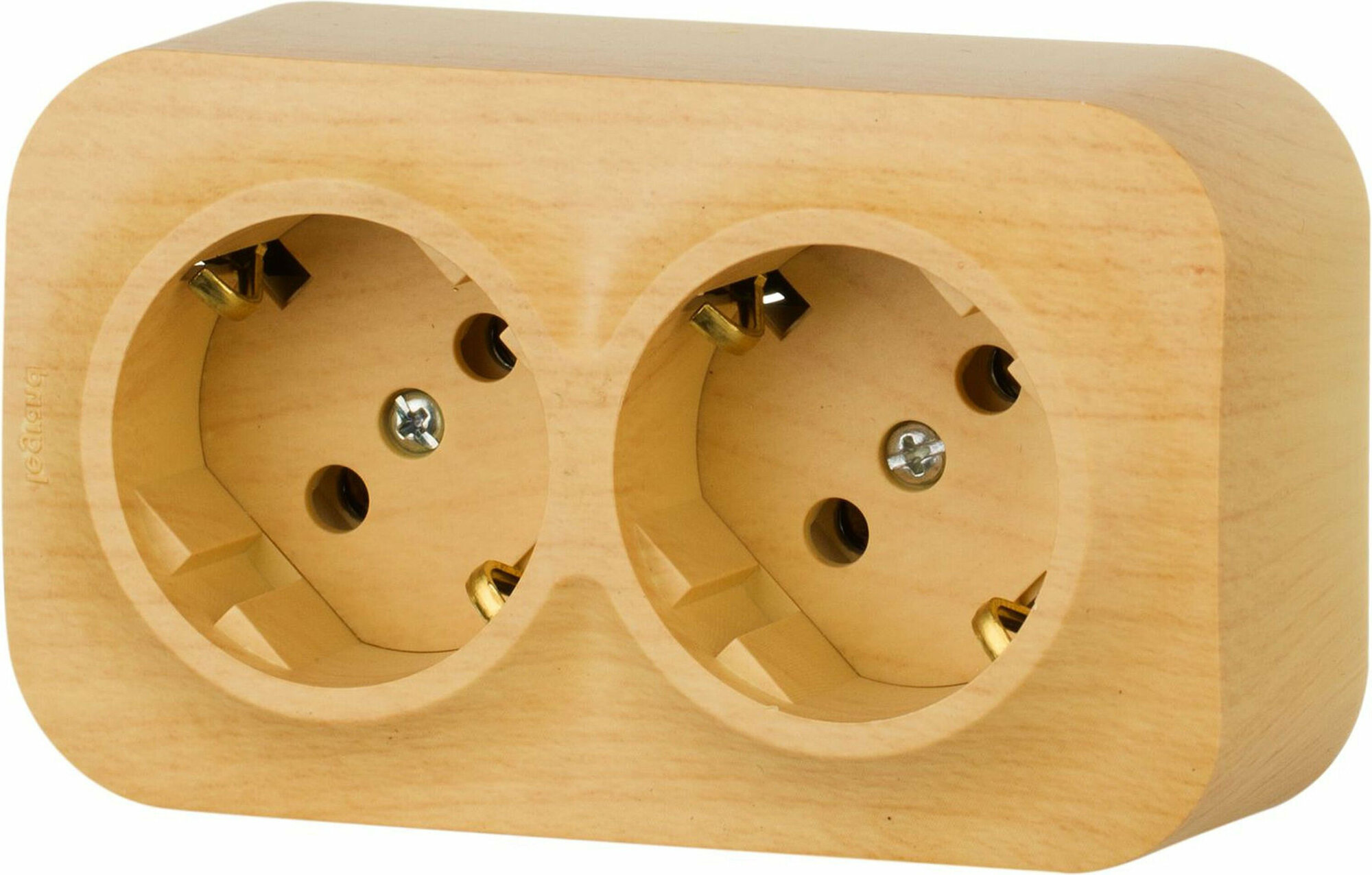 Розетка 782293 двойная открытая установка дерево с заземлением