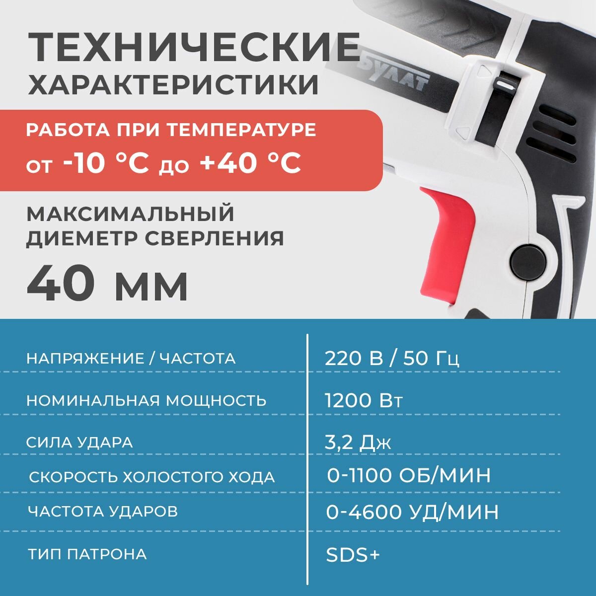Перфоратор электрический EWA БПЕ 1200, 1200 Вт, 3.2 Дж, SDS-Plus , кейс информация: