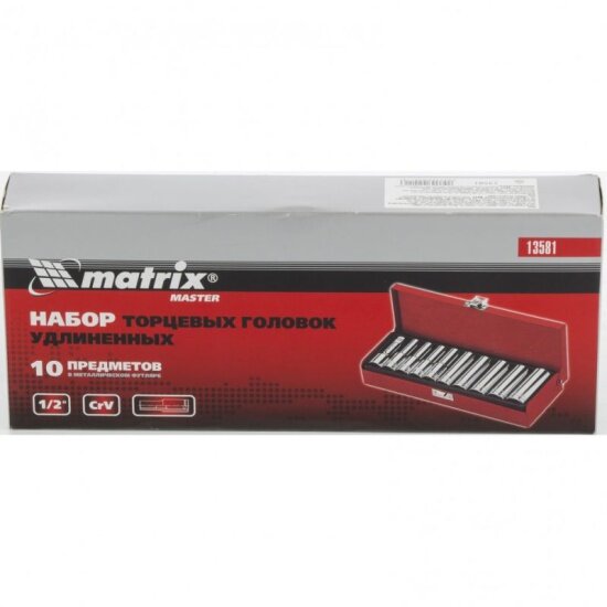 10 цен на Набор торцевых головок MATRIX 13581, 1/2", удлиненные, 10 - 22 мм, 10 предм.
