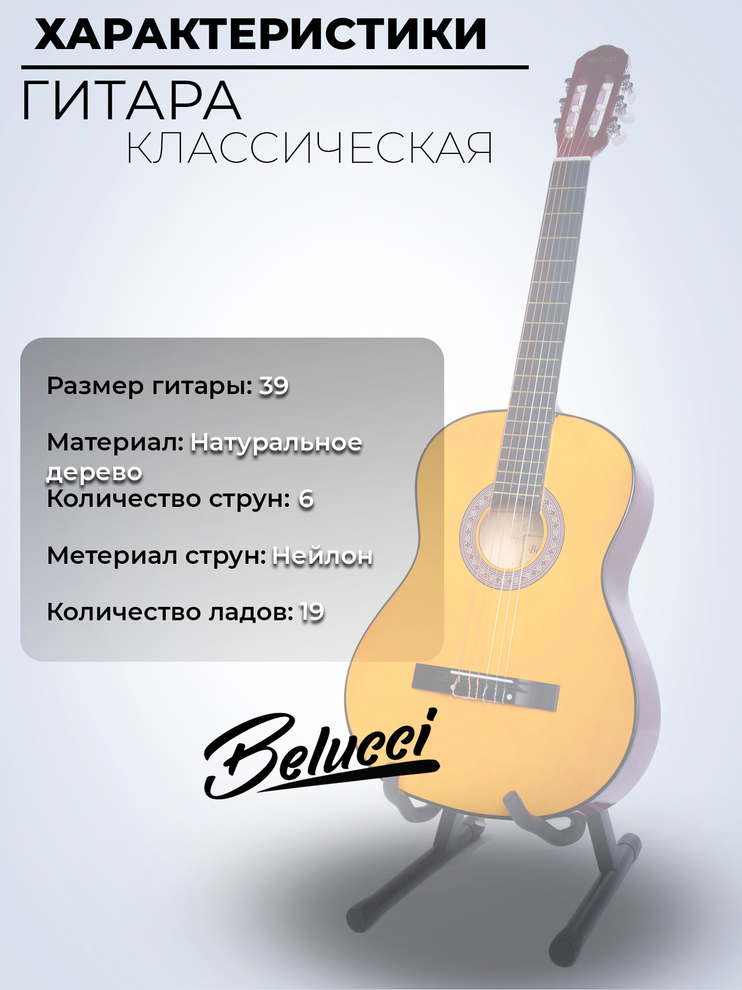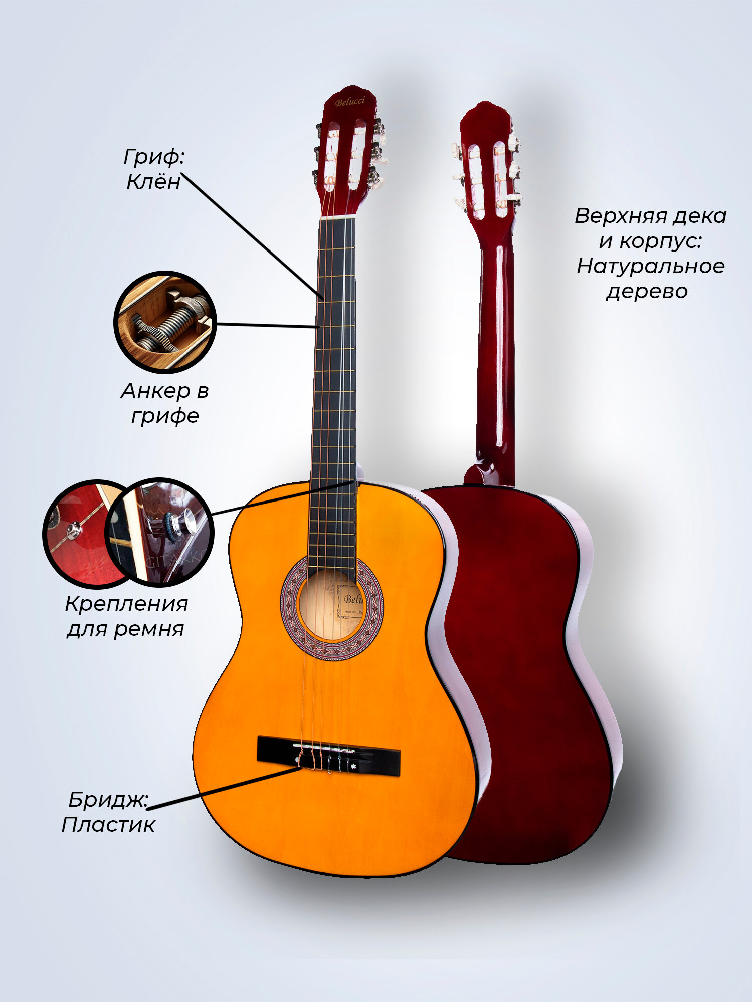 10 цен на Гитара классическая 39" 4/4 оранжевая (Инструмент начинающего музыканта, Belucci BC3905 OR)