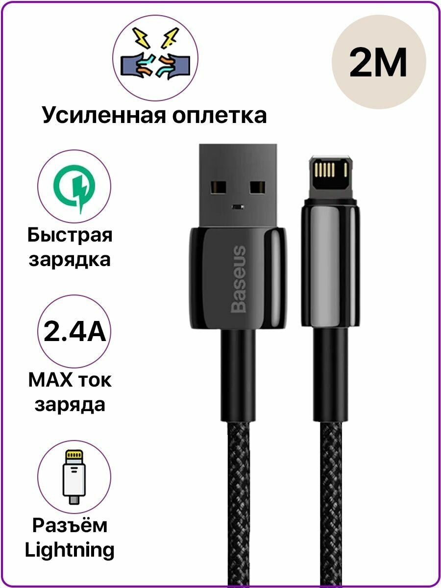 Кабель Baseus Tungsten Gold Fast Charging Data Cable USB to Lightning 2.4A 2 м, цвет Черный (CALWJ-A01) информация: