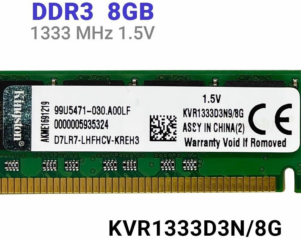 Память DIMM DDR3 8gb 1333Mhz Kingston (original) KVR1333D3N9/8G . 6 659 ₽