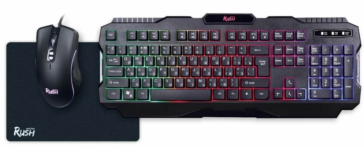Набор игровой клавиатура + мышь проводной Smart Buy SBC-307728G-K RUSH Shotgun + коврик. Черный