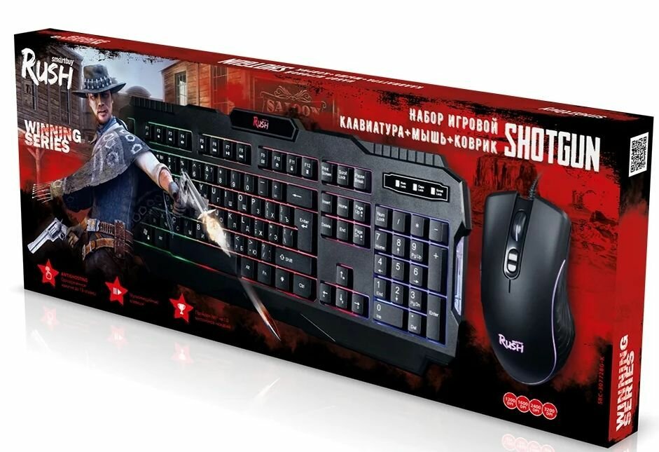 Комплект игровой клавиатура+мышь+коврик Smartbuy Rush Shotgun черный (SBC-307728G-K)/10