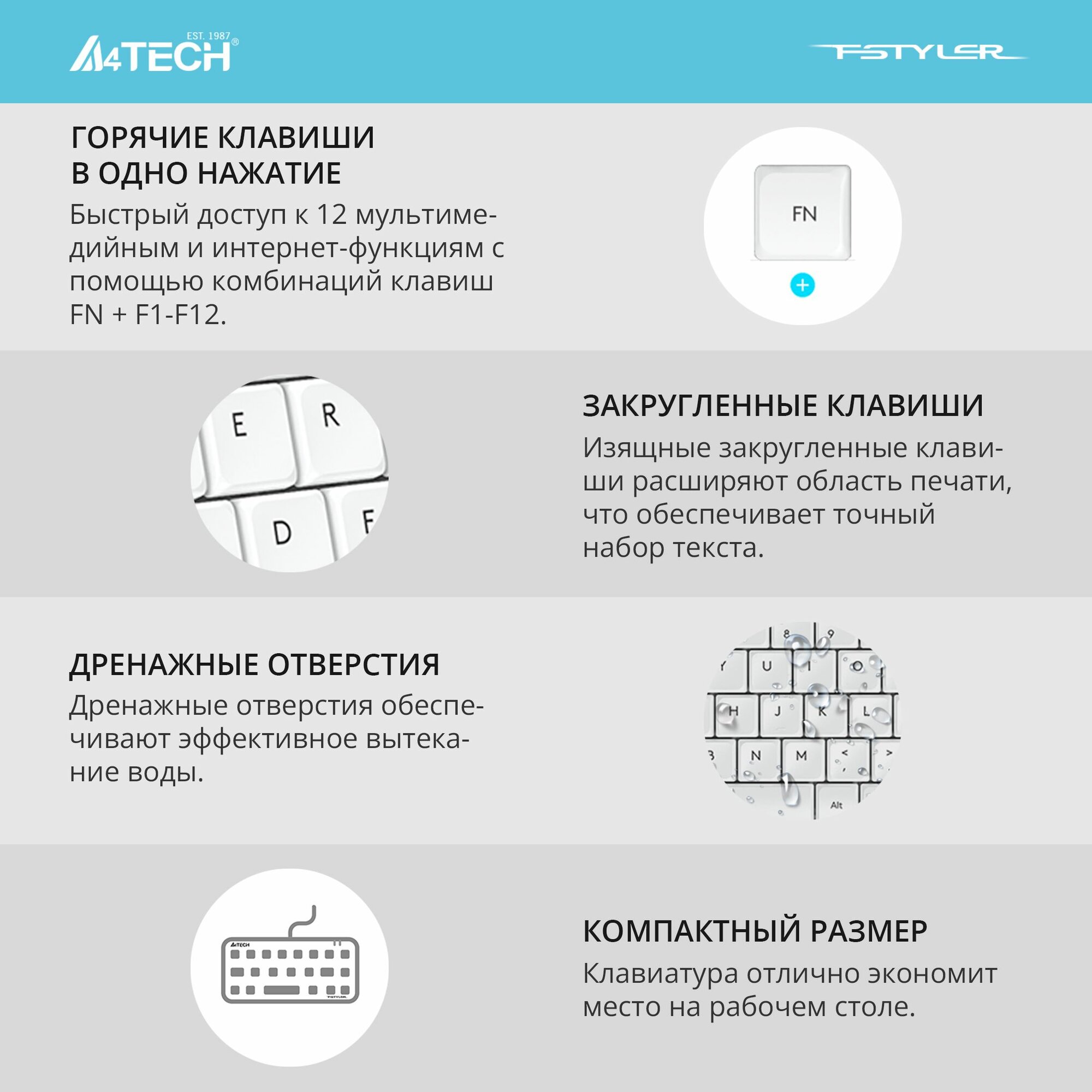 Клавиатура + мышь A4Tech Fstyler F1512, белый 1 440 ₽