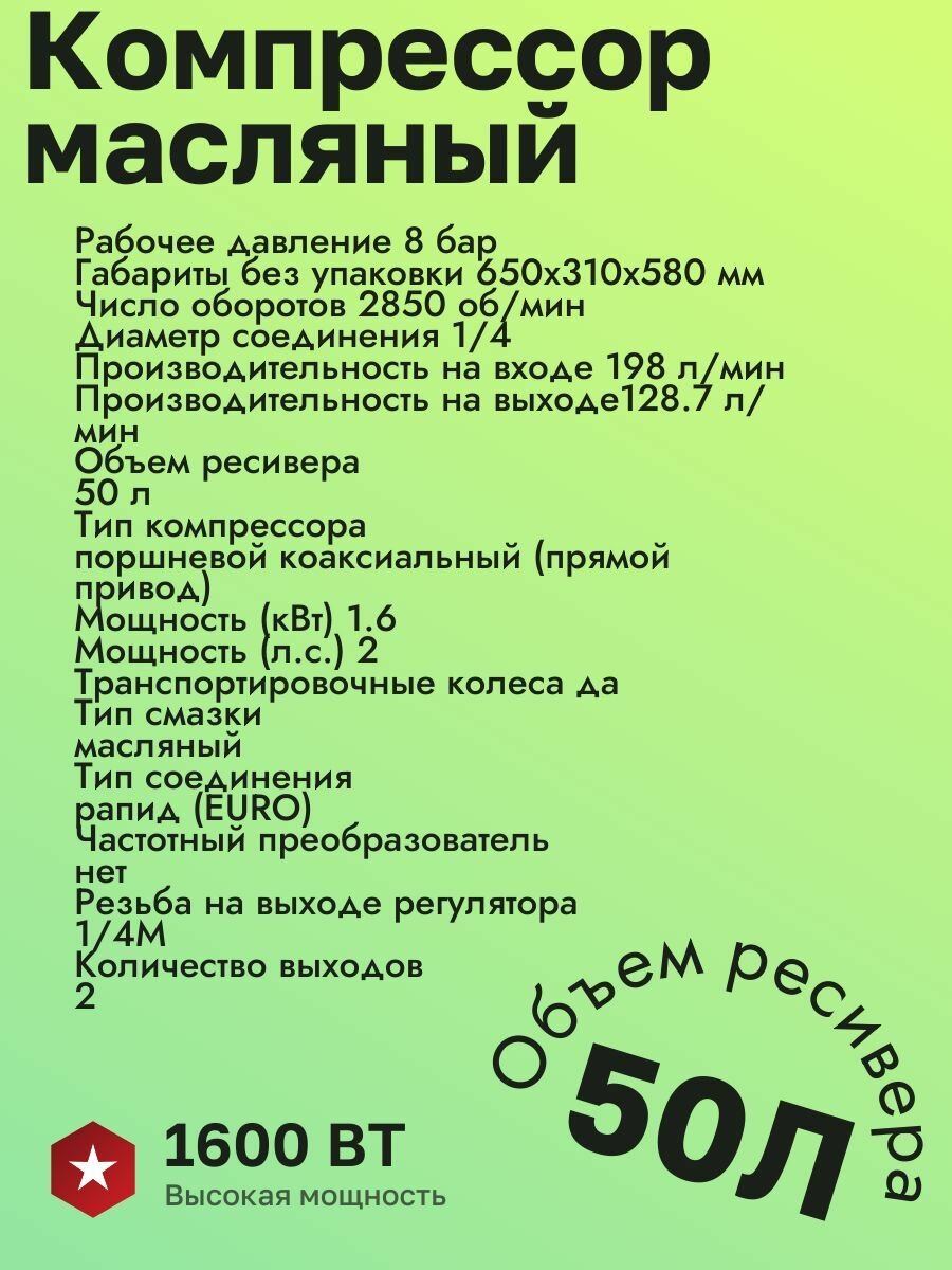 | Объем ресивера | 50 л |