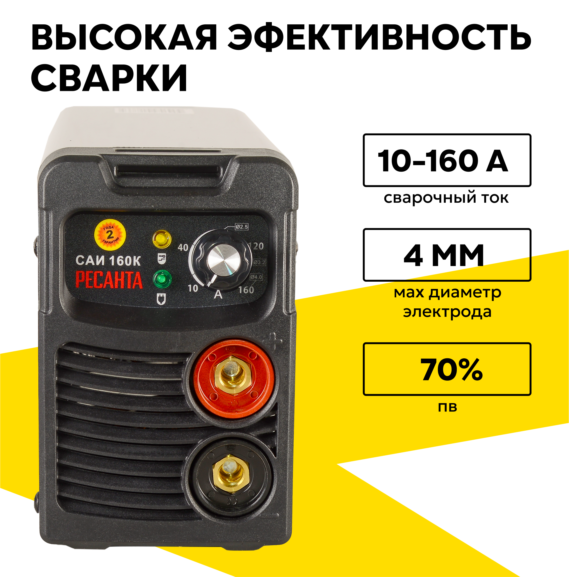10 цен на Сварочный аппарат инверторный САИ160К (компакт) Ресанта, 160А ММА