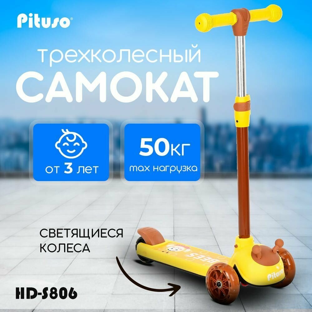 Отзывы на Самокат трехколесный детский Pituso HD-S806, регулировка высоты руля, светящиеся колеса, цвет желтый