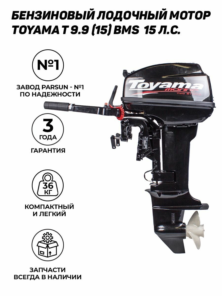 10 цен на Лодочный мотор TOYAMA T9.9(15)BMS, 2-тактный, 246см3, 36 кг, 15 л. с.