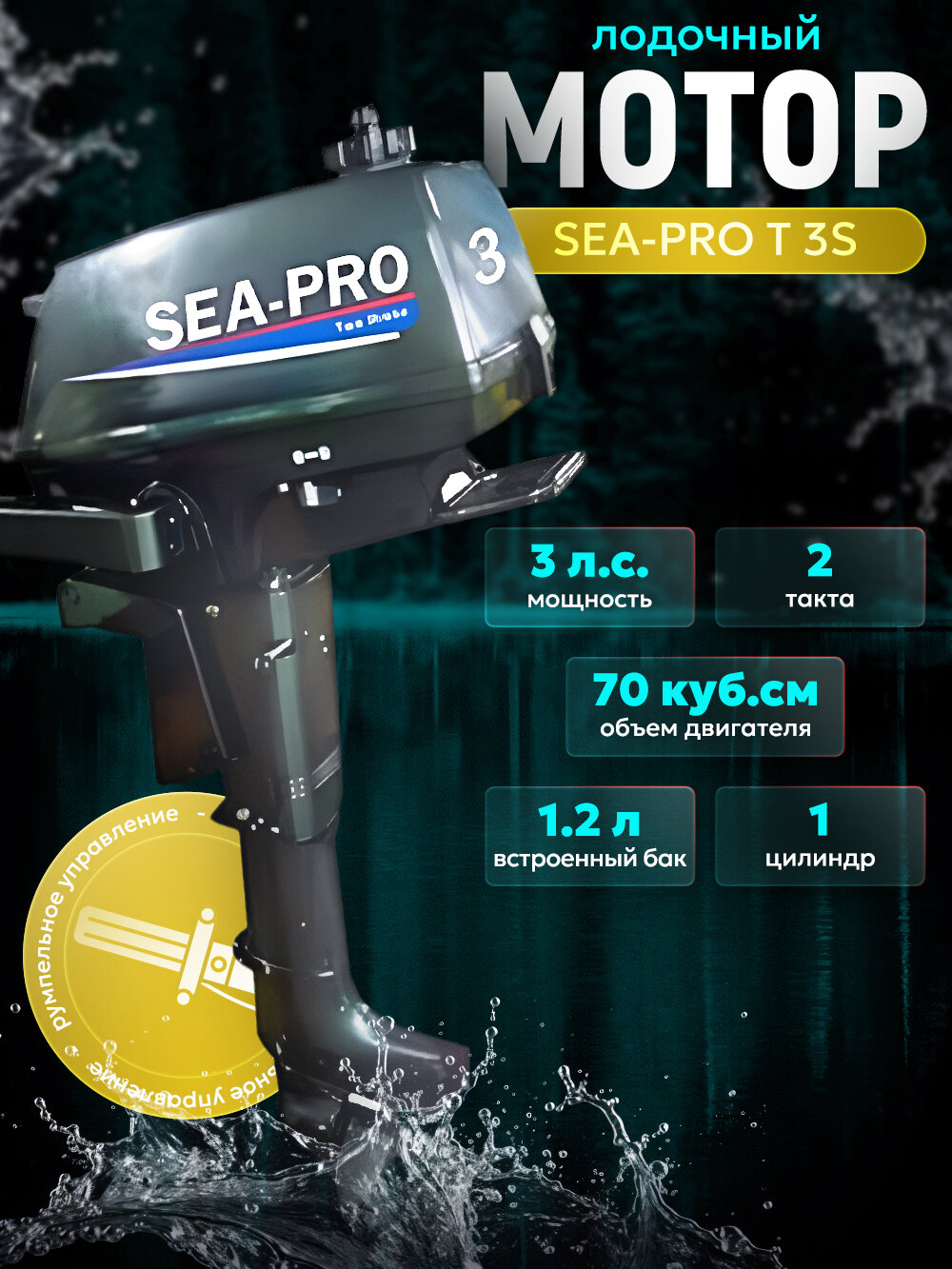 Лодочный мотор SEA-PRO T3S бензиновый подвесной 2 такта, 3 л. с. информация: