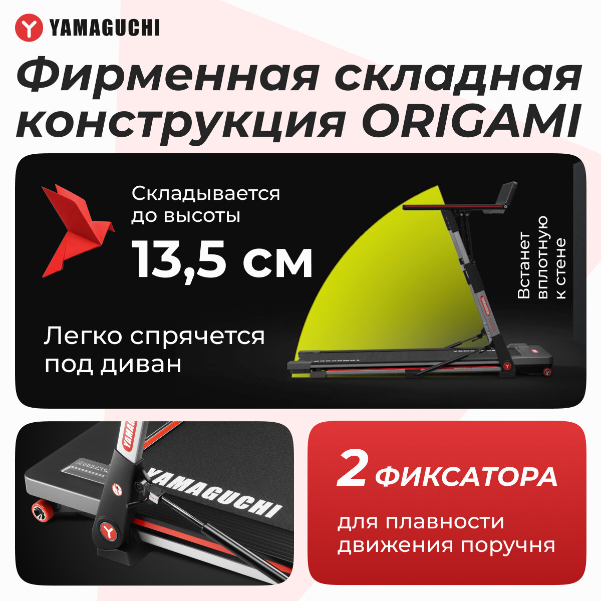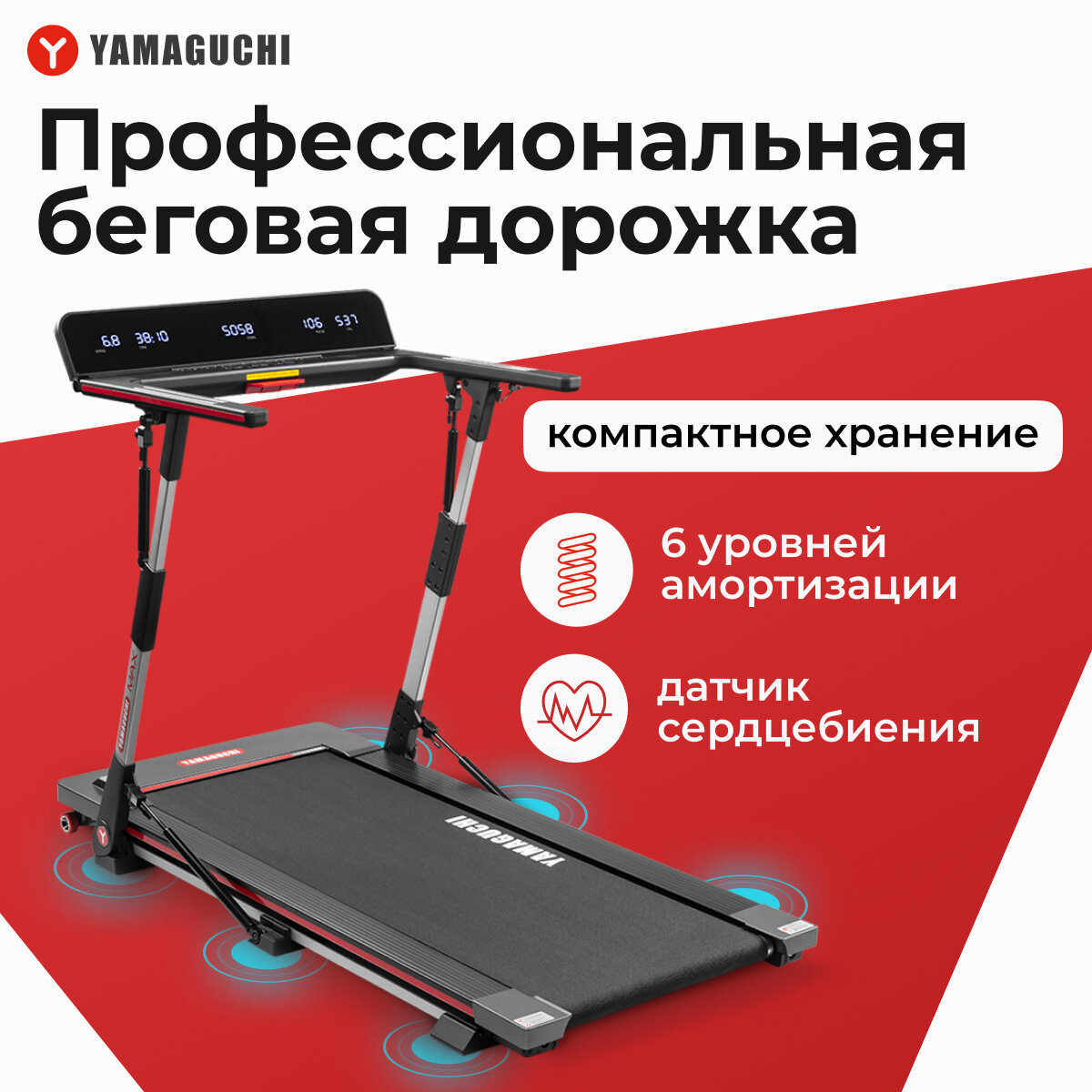 Беговая дорожка Yamaguchi MAX, электрическая, складная, с LED-экраном, до 120кг информация: