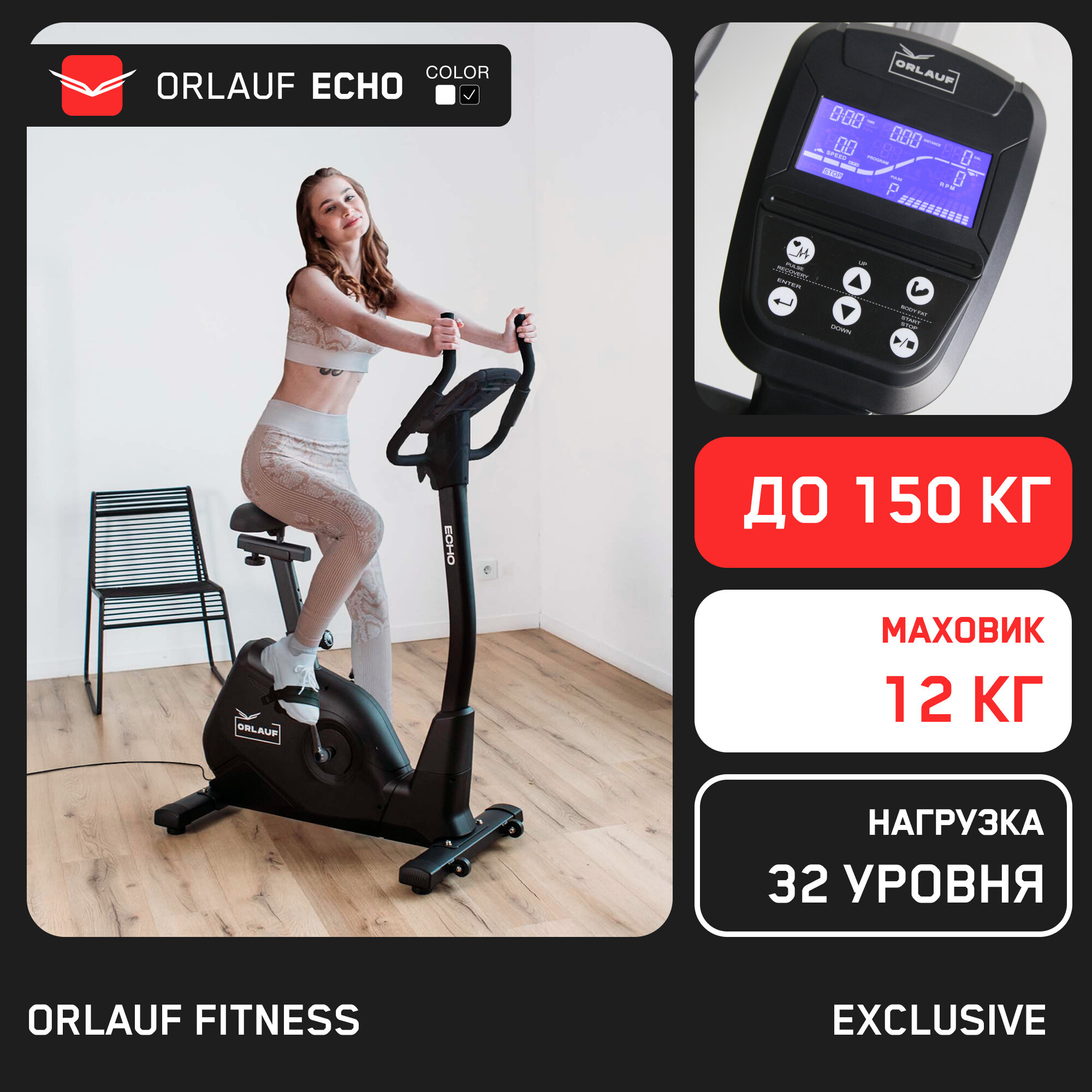 Велотренажер Orlauf Echo Black для дома вертикальный до 150 кг информация:
