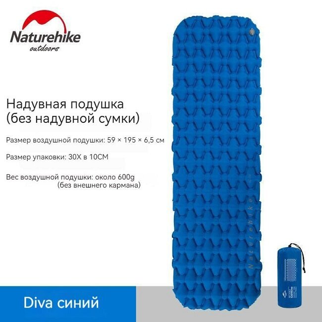 Отзывы на Коврик туристический надувной Naturehike FC-10 одноместный, голубой NH19Z032-P