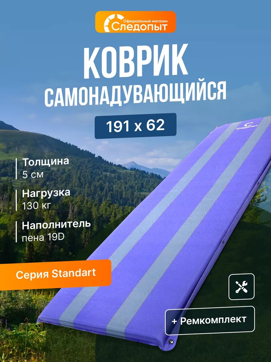 Коврик самонадувающийся туристический 5 см толщина "следопыт" Standart 191x62x5 cм , Походный матрас кемпинговый, Коврик в палатку самонадувной