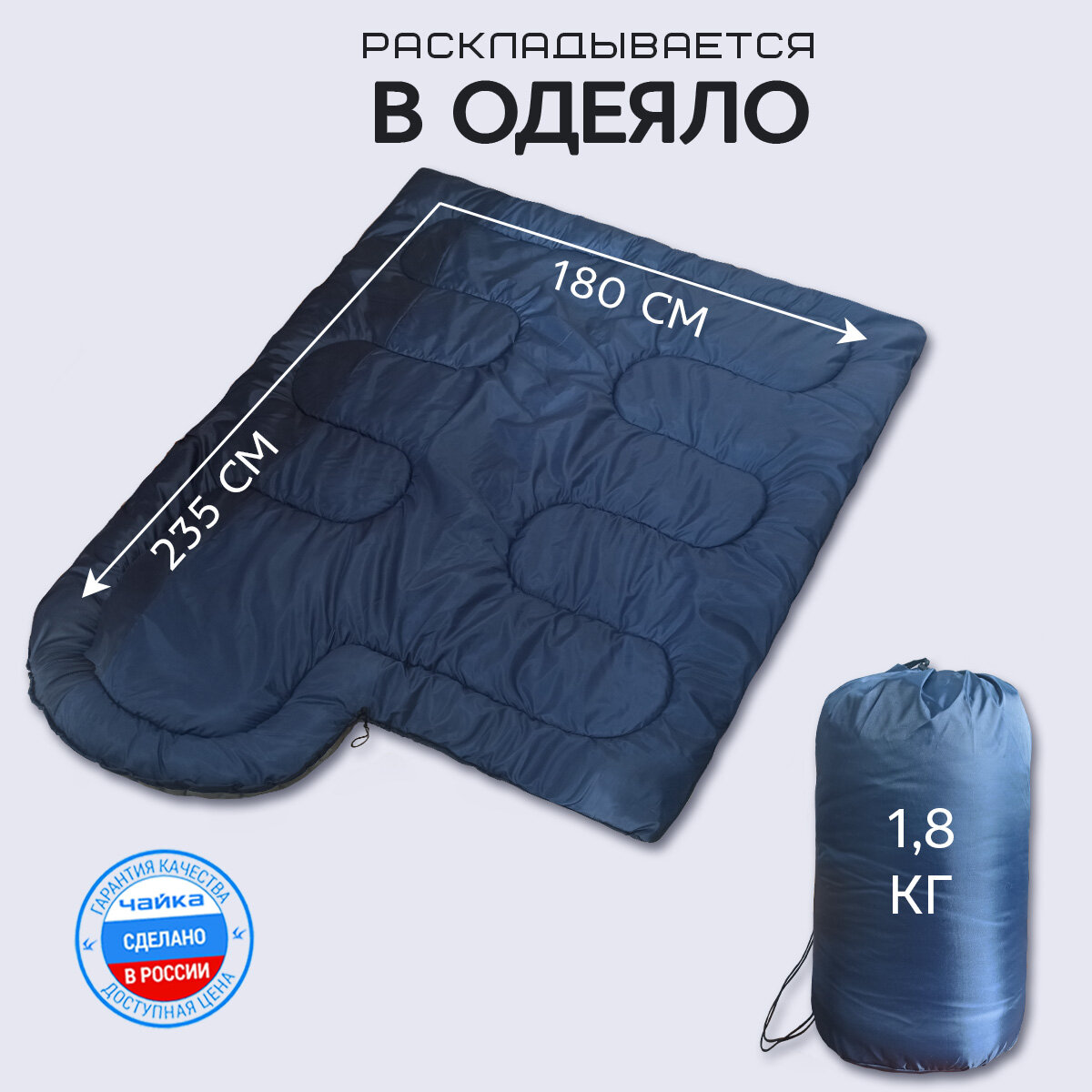 Спальный мешок Чайка СП2 XXL, синий, 235х90 см, наполнитель термофайбер, с капюшоном 2 912 ₽