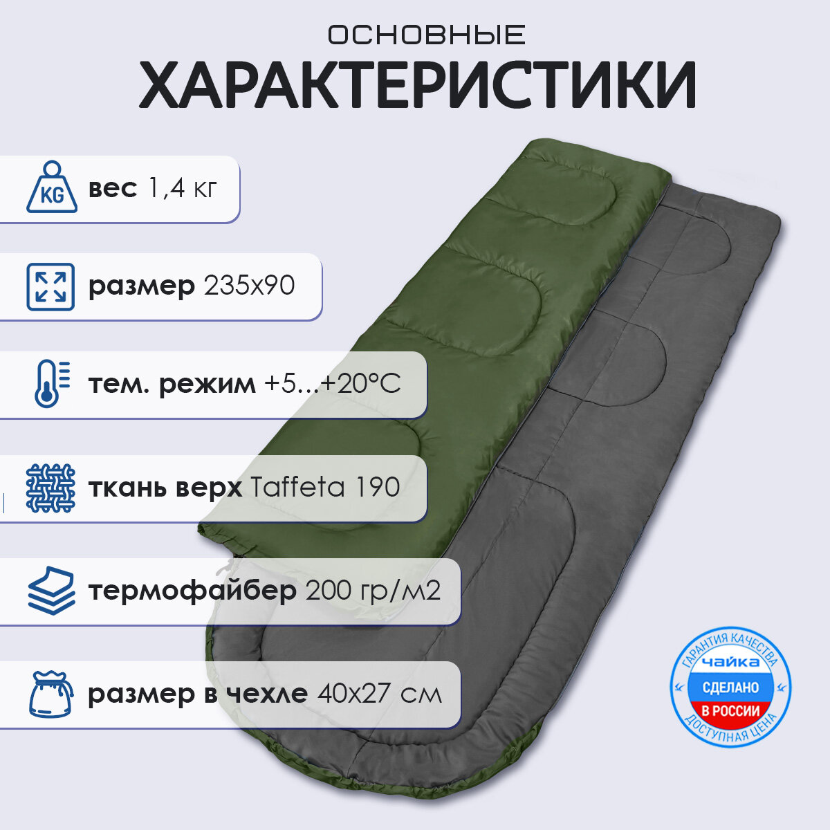 Отзывы на Спальный мешок Чайка "СП2 XXL", туристический, армейский, хаки, 235х90 см